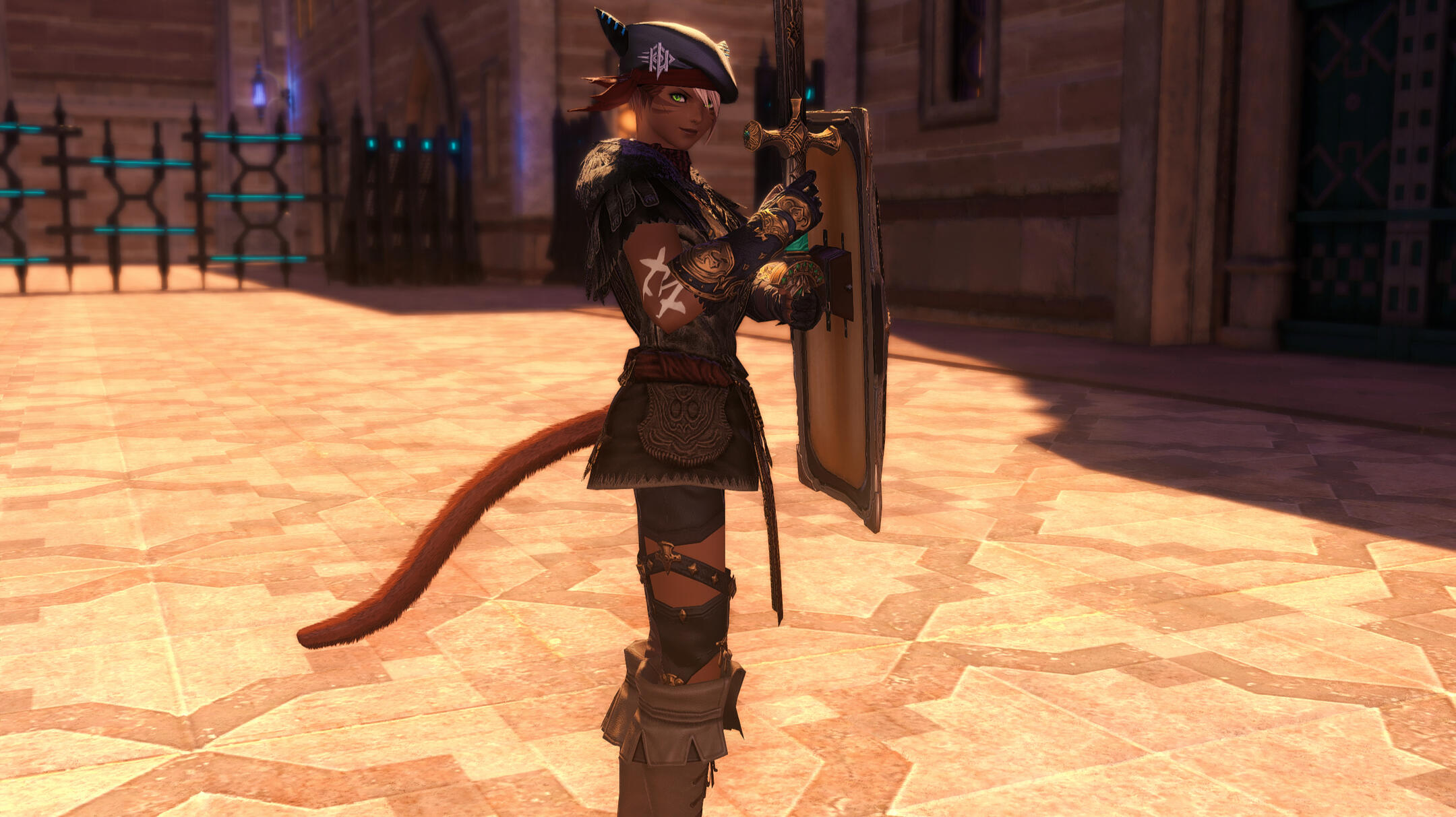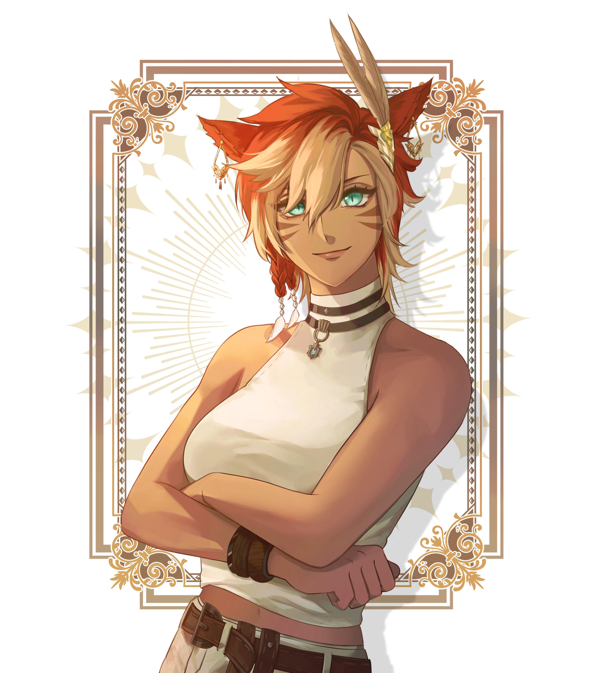 Race: Miqo'te, Seeker of the Sun | Heritage: Gyr Abanian | Gender: Female | Age: In her twenties | Height: 4 fulms and 11 ilms | Build: LitheDistinguishing Marks: M'zajina is decorated with freckles, scars and inked tribal patterns across the body. The scars upon her body are tributes to the day in the Resistance and can be found here and there upon her, the easiest ones to see are all the ones upon her face.Common Accessories: She usually travels in possession of an instrument such as a flute, a harp or a harmonica. Additionally, she almost constantly keeps a diligently used notepad with her.Through some digging!