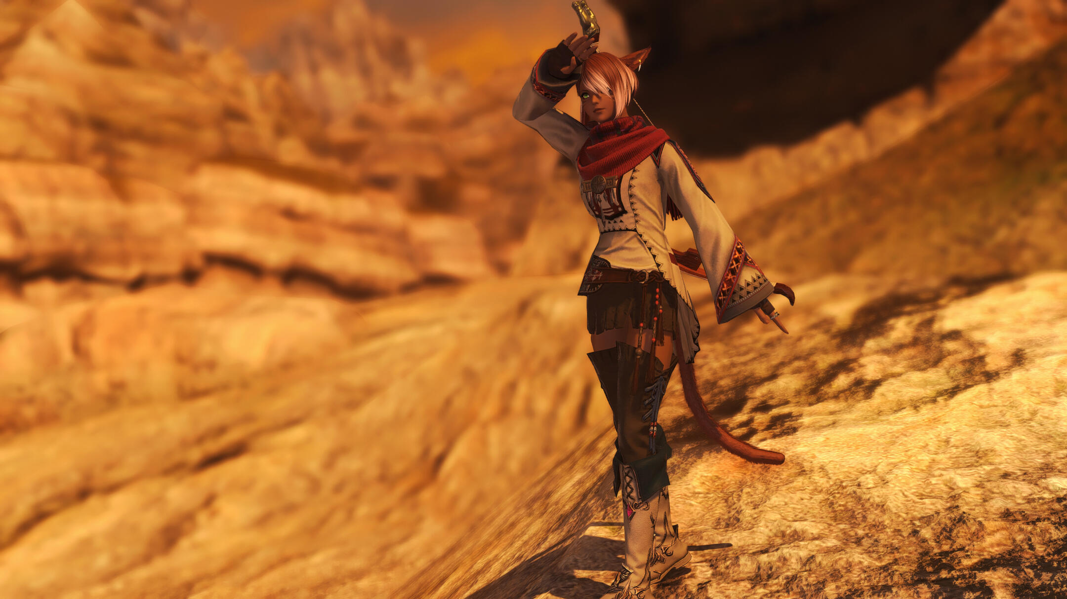 For as long as she can recall, M’zajina has been on the hunt for thrills and challenges. In earlier times, she found all she could desire within the Ala Mhigan Resistance.These days however, her appetite for adventure is satisfied by her work at the entirely lawful Fair Scale Bank, along with her freelance endeavours and personal projects. Perhaps your character is someone M’zajina has collaborated with previously or a rival? Maybe your character could benefit from the assistance of a reliable…. resourceful and adaptable adventurer, with M’zajina potentially being the Seeker that you seek?A hound in Miqo's clothing